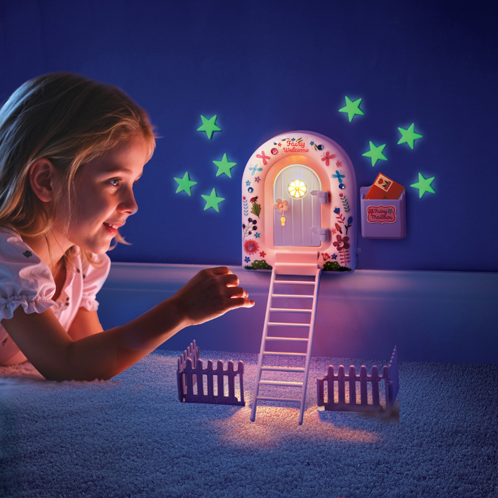 Create a magical fairy door with an LED nightlight. Includes an enchanted mailbox, decorative gems, and stickers for personalised fun, sparking imagination and creativity in any child’s room.