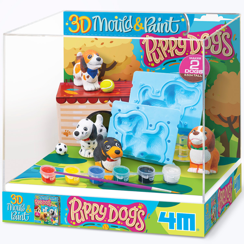 Bring the finished creations front and centre with this demo display for Mould & Paint 3D Puppy Dogs. Featuring the completed 3D puppy figures alongside the kit components, it helps customers understand the creative process from moulding to painting. A fun, eye-catching way to inspire hands-on creativity and imaginative play at the point of sale.