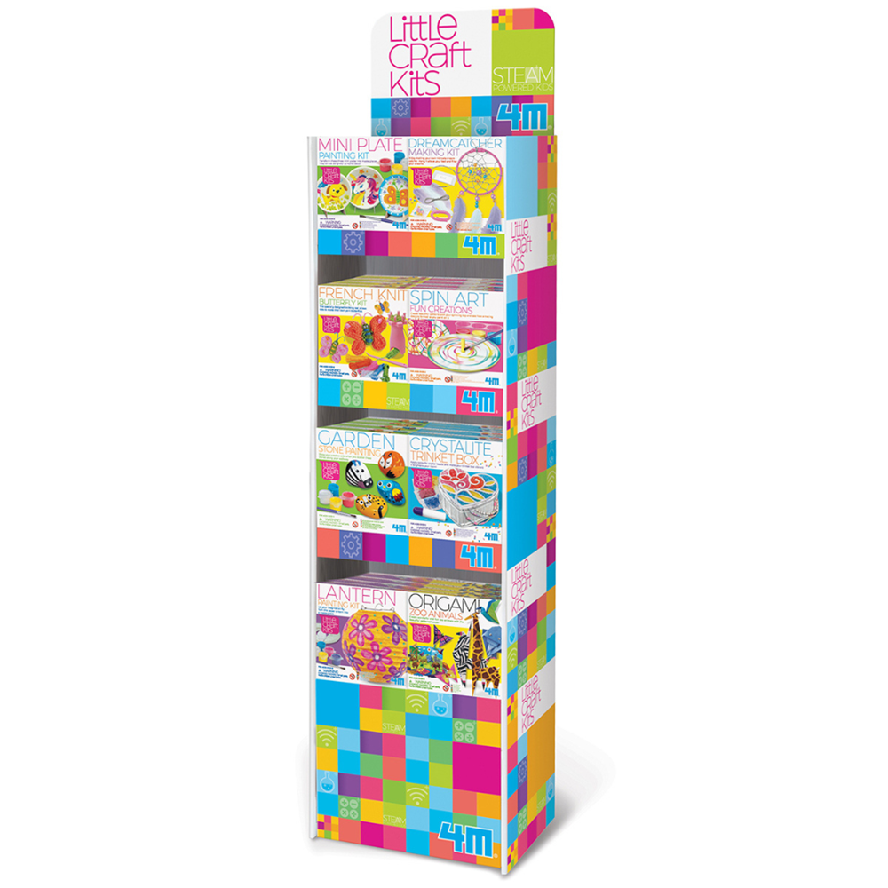 The 4M Little Craft Display is designed to present the Little Craft range in a clear, organised, and inviting way. Featuring four shelves, it makes it easy to showcase the full variety of Little Craft kits while keeping the display compact and accessible.