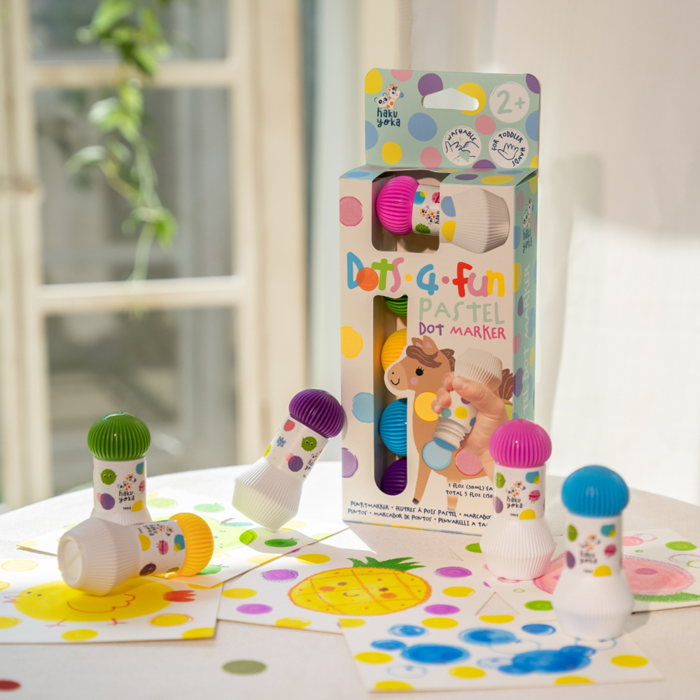 The Dots 4 Fun - Pastel Dot Marker Set is designed for young creators to explore soft colours, make gentle marks, and enjoy hands-on creative play! With five soothing, easy-grip pastel dot markers, kids can freely stamp, dot and decorate their artwork in a fun, mess-free way.
